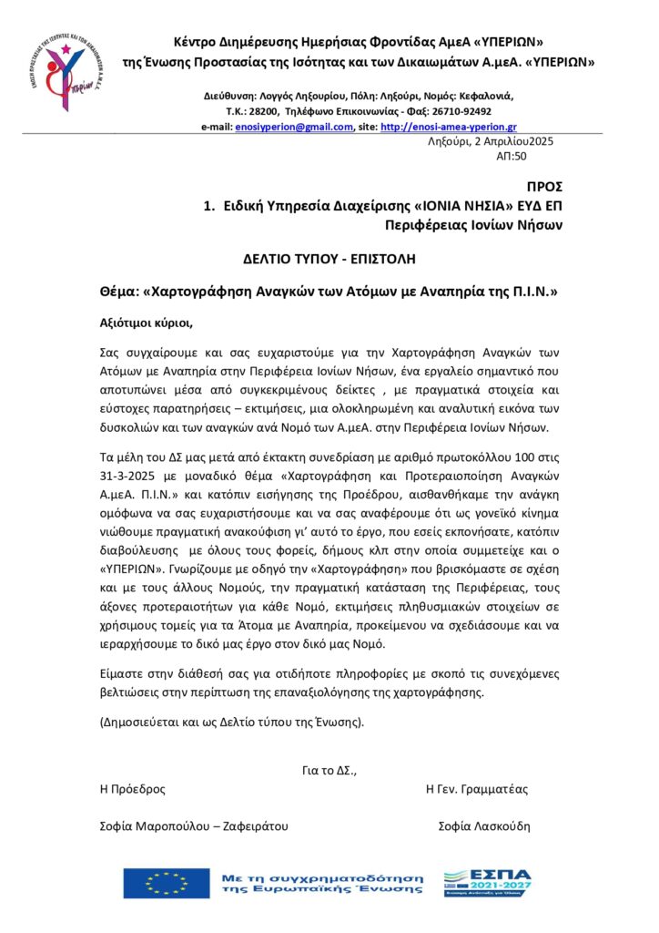 Χαρτογράφηση Αναγκών των Ατόμων με Αναπηρία της Π.Ι.Ν.