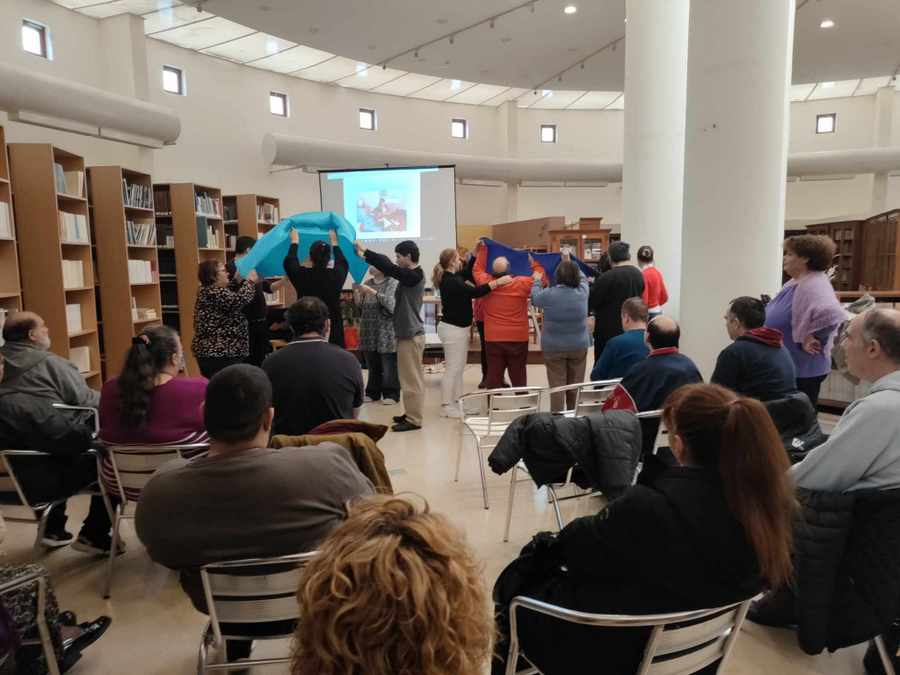 Ξεχωριστή η Χριστουγεννιάτικη γιορτή του «ΥΠΕΡΙΩΝΑ» την Τετάρτη 20/12/2023 στην Ιακωβάτειο βιβλιοθήκη Ληξουρίου. Παρόντες οι ωφελούμενοι του ΚΔΗΦ και της ΣΥΔ το προσωπικό και των δύο δομών, ο εθελοντής μουσικός του ΚΔΗΦ Γιώργος Ταραζής, η Πρόεδρος και τα μέλη του ΔΣ της Ένωσης και ο Πρόεδρος  και μέλη του εφορευτικού Συμβουλίου της Ιακωβατείου Βιβλιοθήκης.  Ζεστή – οικογενειακή ατμόσφαιρα με Χριστουγεννιάτικες μελωδίες και τραγούδια συνοδευόμενα από ψυχοκινητικές χορογραφίες των ωφελούμενων και των εκπαιδευτών τους.