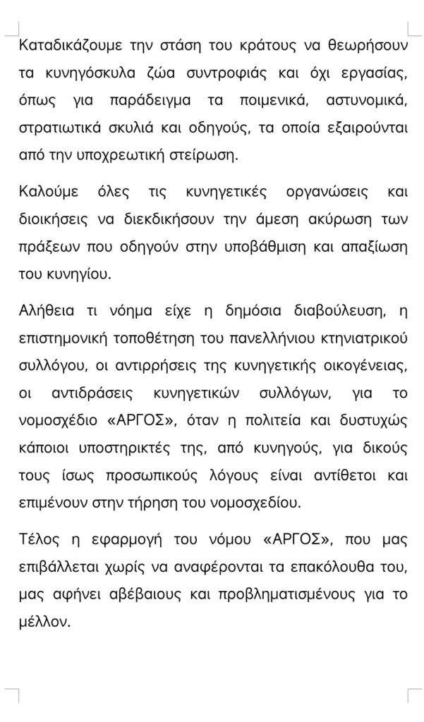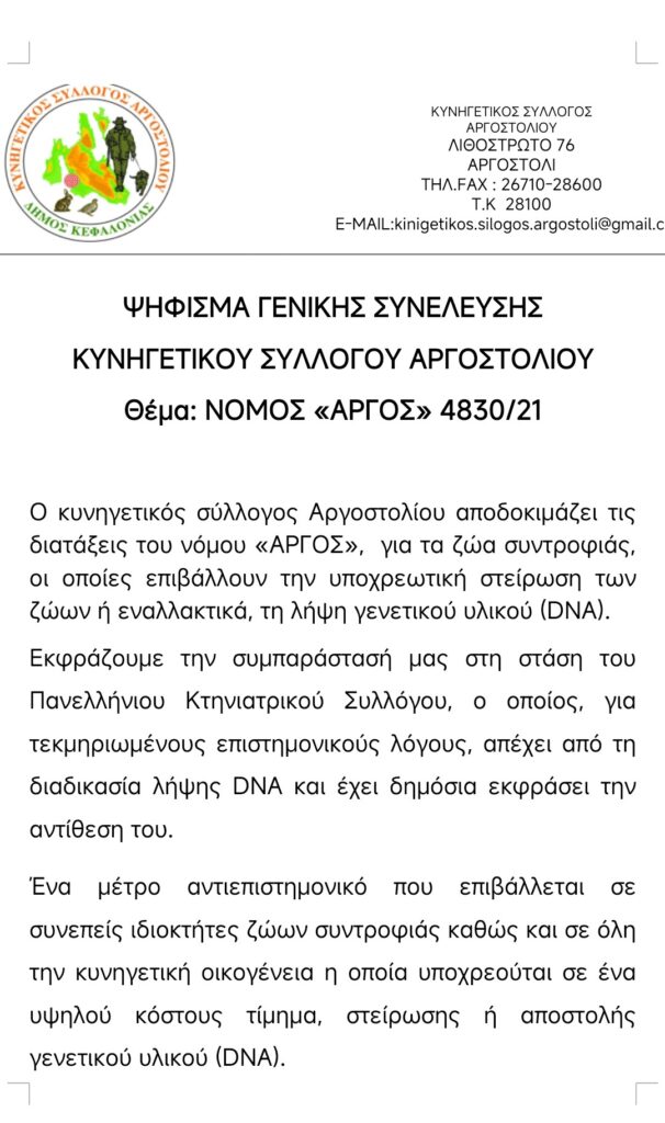 Ψήφισμα Γενικής Συνέλευσης Κυνηγετικού Συλλόγου