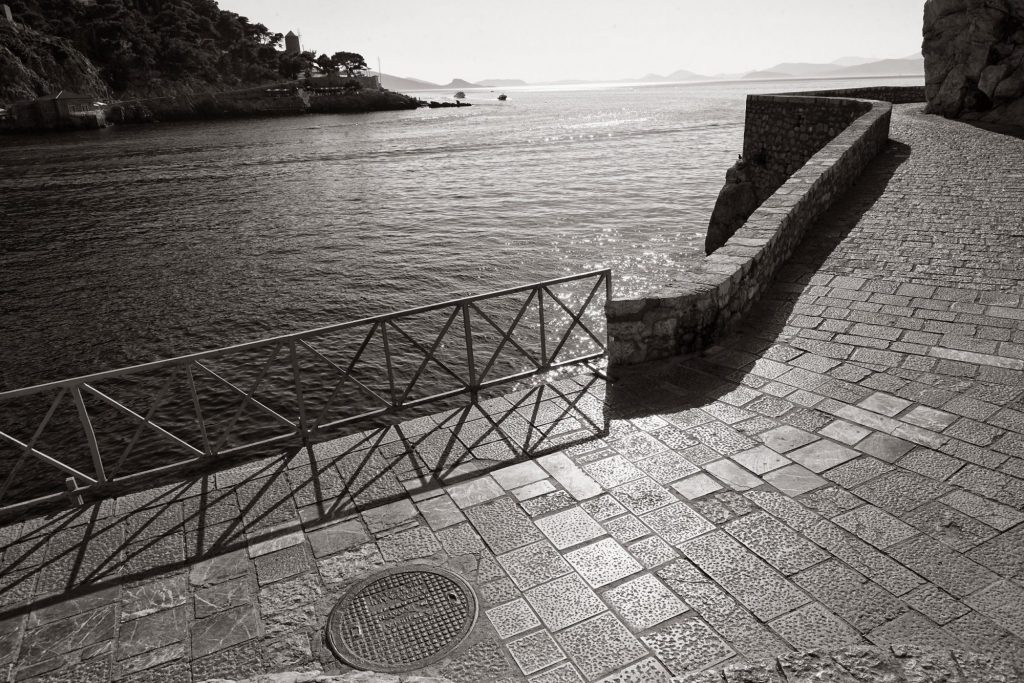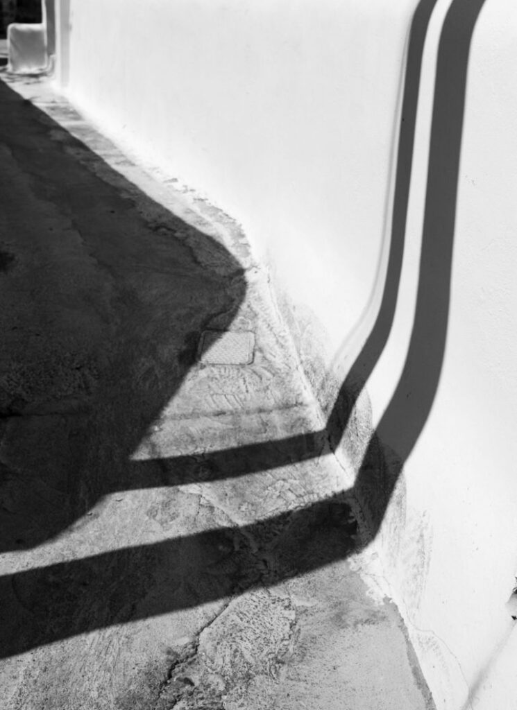 Ο καυτός ήλιος ανάβει το πλακόστρωτο, το θαλασσινό αεράκι καβγαδίζει µε τη ζέση. Λευκή και γαλάζια ραστώνη µε αλµυρά χείλη ατενίζοντας το άπειρο του πελάγους