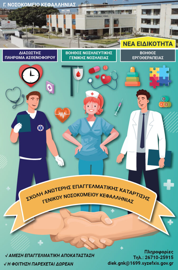 ΕΓΓΡΑΦΕΣ ΣΤΗΝ ΣΧΟΛΗ ΑΝΩΤΕΡΗΣ ΕΠΑΓΓΕΛΜΑΤΙΚΗΣ ΚΑΤΑΡΤΙΣΗΣ ΤΟΥ ΓΕΝΙΚΟΥ ΝΟΣΟΚΟΜΕΙΟΥ ΚΕΦΑΛΛΗΝΙΑΣ ΓΙΑ ΤΗΝ ΠΕΡΙΟΔΟ 2024 – 2025