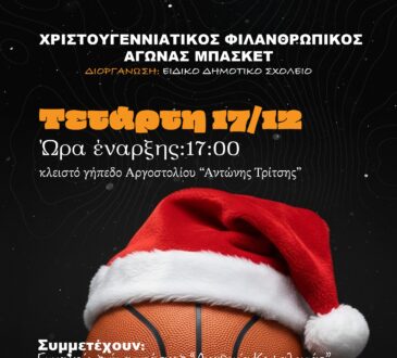 Χριστουγεννιάτικο Παζάρι και Φιλανθρωπικός Αγώνας Μπάσκετ από το Ειδικό Δημοτικό Σχολείο Αργοστολίου Το Ειδικό Δημοτικό Σχολείο Αργοστολίου, διοργανώνει το Σάββατο...