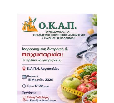 ΚοινωνίαΟΚΑΠ: “Ισορροπημένη διατροφή και παχυσαρκία, τι πρέπει να γνωρίζουμε” ΚΑΠΗ Αργοστολίου Κυριακή 15 Μαρτίου12 Μαρτίου, 2026Κοινωνία135 views