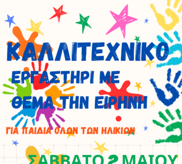 ΠολιτισμόςΚαλλιτεχνικό εργαστήρι για την Ειρήνη το Σάββατο 2 Μαϊου στο Εργατικό Κέντρο28 Απριλίου, 2026Πολιτισμός49 viewsΠΡΟΣΚΛΗΣΗ Η Επιτροπή Ειρήνης Κεφαλονιάς και Ιθάκης καλεί τα παιδιά κάθε ηλικίας να ζωγραφίσουν μαζί μας στο ΚΑΛΛΙΤΕΧΝΙΚΟ ΕΡΓΑΣΤΗΡΙ ΓΙΑ ΤΗΝ...