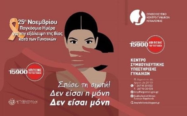 Για ένατη συνεχόμενη χρονιά το Συμβουλευτικό Κέντρο Γυναικών Κεφαλονιάς τιμά την 25η Νοεμβρίου, Παγκόσμια Ημέρα για την εξάλειψη της βίας κατά των γυναικών. Η μέρα αυτή αποτελεί μία συμβολική αφορμή, ώστε να αντικρίσουμε κατάματα ένα διαχρονικό πρόβλημα, το οποίο συντηρείται μέσω της κοινωνικοποίησης των φύλων, της δημιουργίας έμφυλων στερεοτύπων και προκαταλήψεων, αλλά και της συνεχούς απειλής βίας. Οι παράγοντες αυτοί συνολικά θέτουν τις γυναίκες σε κατώτερη θέση και επηρεάζουν τις ενέργειές τους σε όλα τα επίπεδα, ενώ συνιστούν και παραβίαση των ανθρωπίνων δικαιωμάτων.