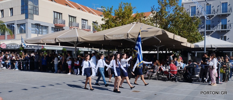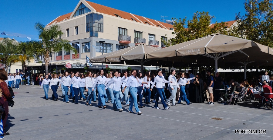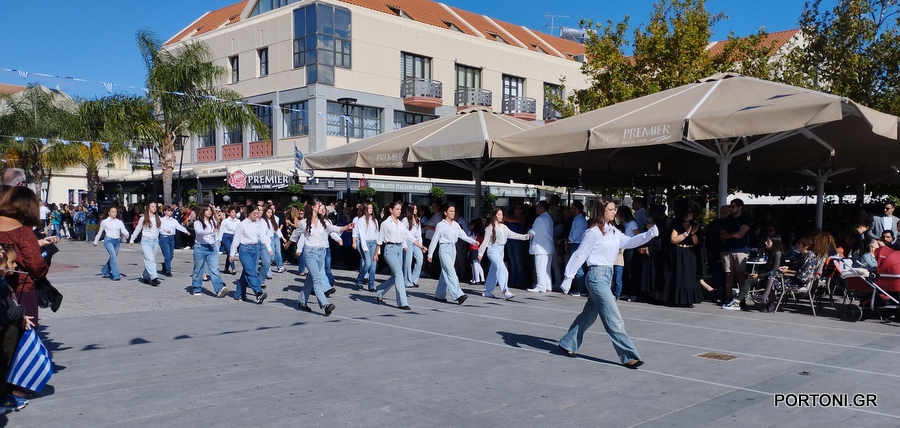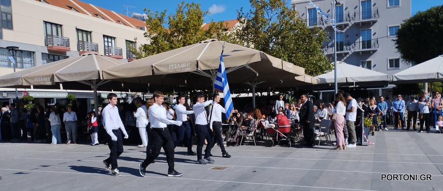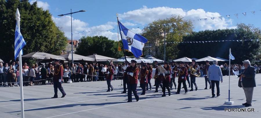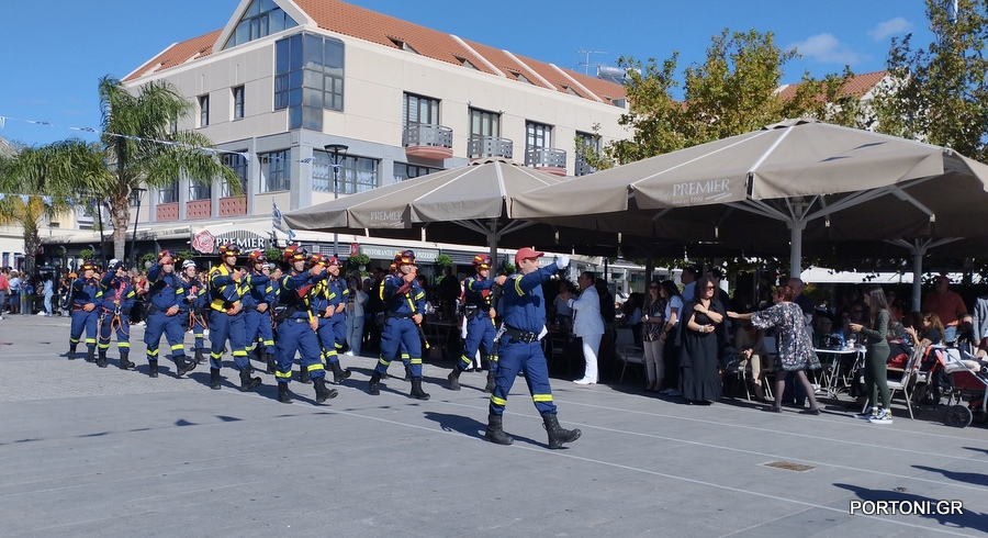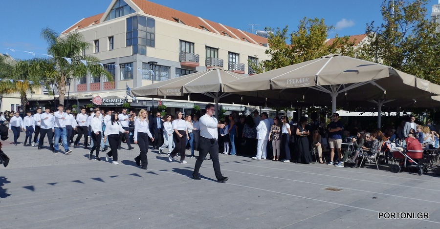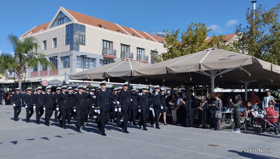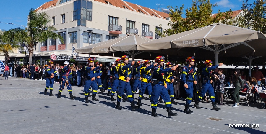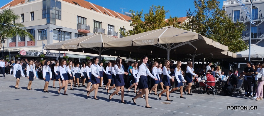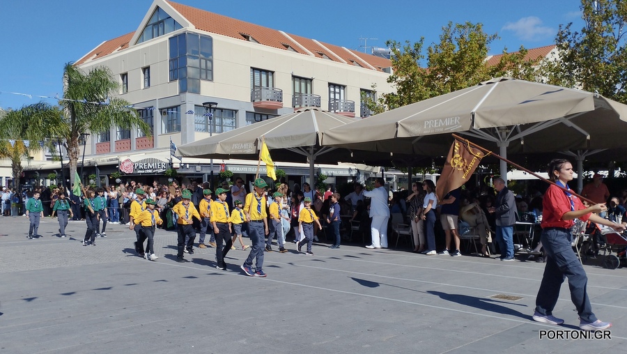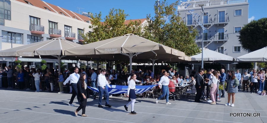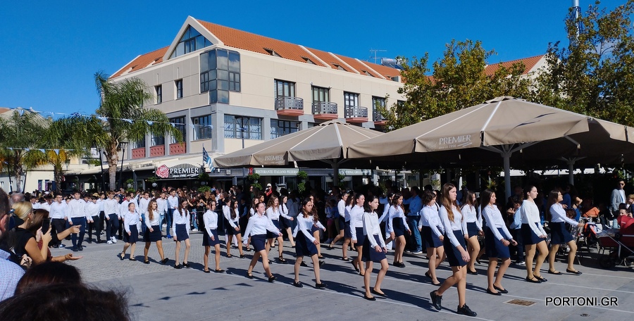 Τμήματα από όλες τις σχολικές μονάδες του Δήμου Αργοστολίου και από παρήλασαν με κάθε επισημότητα μπροστά από τους επισήμους με τον κόσμο να χειροκροτεί με ενθουσιασμό και υπερηφάνια. Οι μαθητές όλων των ηλικιών παρέλασαν κάτω από τον καταγάλανο ουρανό με τον καιρό να παραμένει αρκετά ζεστός για τέλος Οκτώβρη.