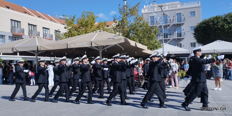 Στην παρελαση συμμετείχαν το Λύκειο Ελληνίδων, η Ανωτάτη Σχολή Εμπορικού Ναυτικού, το 1ο Σώμα Προσκόπων, αθλητές από διάφορα σωματεία αλλά και επίλεκτοι Πυροσβέστες. Την κυβέρνηση εκπροσώπσε φέτος ο κ. Στέλιος Σακαρέτσιος Γενικός Γραμματέας στο Υπουργείο Μεταφορών.