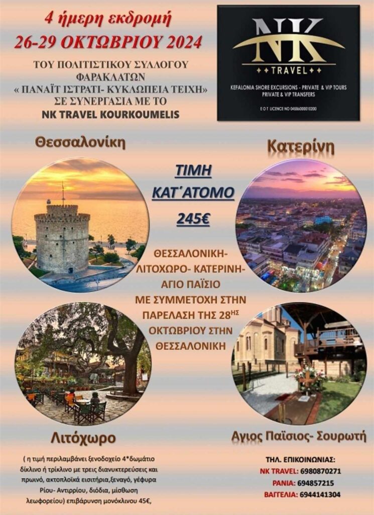4 ήμερη εκδρομή 26-29 Οκτωβρίου Θεσσαλονίκη-Κατερίνη-Λιτόχωρο-Άγιος Παϊσιος-Σουρωτή