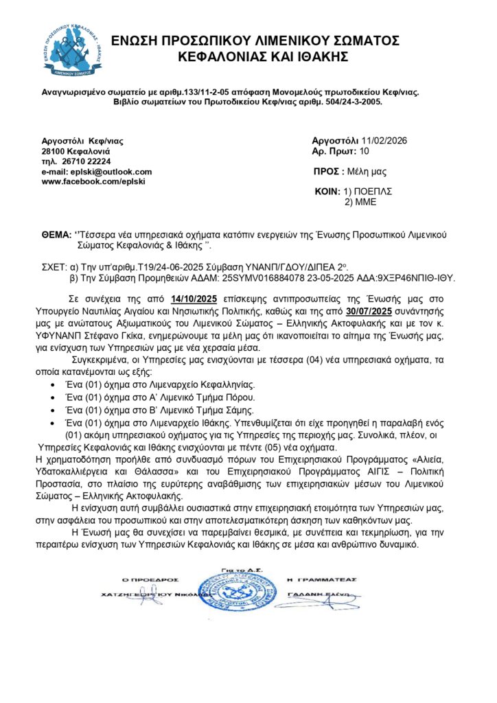 4 νέα υπηρεσιακά οχήματα κατόπιν ενεργειών της Ένωσης Λιμενικού Σώματος