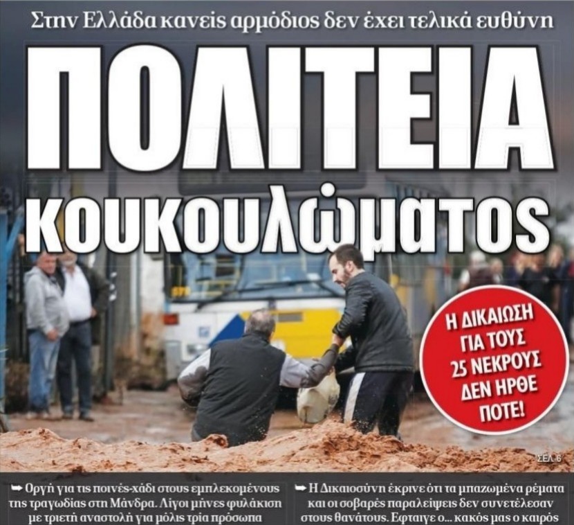 Με αφορμή την απόδοση ποινικών ευθυνών για την φονική (25 νεκροί) πλημμύρα (15/11/2017) στην Μάνδρα – Αττικής, τα λόγια του Σόλωνα στην Ελλάδα του 2024 φαντάζουν δυσνόητες έννοιες!