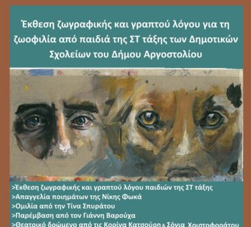 ΚοινωνίαΈκθεση ζωγραφικής και γραπτού λόγου για τη ζωοφιλία από παιδιά των Δημοτικών Σχολείων του Δήμου Αργοστολίου21 Μαΐου, 2025Κοινωνία299 viewsΣε συνέχεια της προκήρυξης μαθητικής δράσης από τον Δήμο Αργοστολίου, στα πλαίσια της παγκόσμιας ημέρας αδέσποτων ζώων, έχουμε την τιμή...