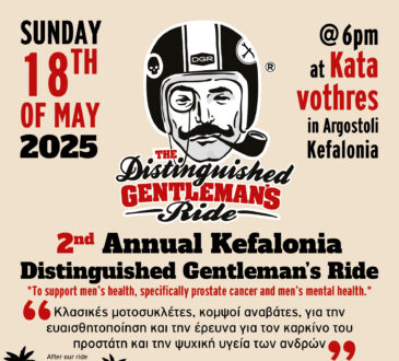 The Distinguished Gentleman's Ride - Κεφαλονιά Οδηγούμε τις μοτοσυκλέτες μας για καλό σκοπό Για 2η φορά έρχεται στην Κεφαλονιά, η διοργάνωση «The Distinguished Gentleman's Ride». Πρόκειται για...