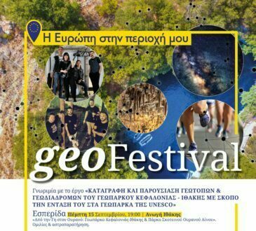 Κοινωνία«Η Ευρώπη στην περιοχή μου: Geo-Festival – Δράσεις και εκδηλώσεις γνωριμίας με το Γεωπάρκο Κεφαλονιάς – Ιθάκης»6 Σεπτεμβρίου, 2022Κοινωνία653 viewsΕUROPE IN MY REGION 2022 «Η Ευρώπη στην περιοχή μου: Geo-Festival - Δράσεις και εκδηλώσεις γνωριμίας με το Γεωπάρκο Κεφαλονιάς...