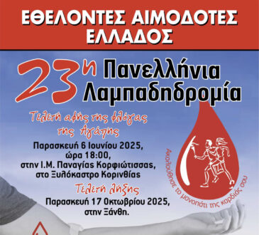 Λόγω των άστατων καιρικών συνθηκών που προβλέπονται κατά την προγραμματισμένη ημέρα και ώρα της εκδήλωσης, η διοργάνωση της 23ης Πανελλήνιας Λαμπαδηδρομίας...