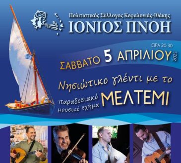 Μουσική & ΧορόςΠολιτισμόςΝησιώτικο γλέντι του Πολιτιστικού Συλλόγου Ιόνιος Πνοή το Σάββατο 5 Απριλίου στο “Capitol” στο Φανάρι31 Μαρτίου, 202531 Μαρτίου, 2025Μουσική & ΧορόςΠολιτισμός327 viewsΣας περιμένουμε να γλεντήσουμε σε νησιώτικους σκοπούς από όλο το Αιγαίο και να χορέψουμε τα κεφαλονίτικα όπως παλιά με το...
