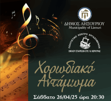 Μουσική & ΧορόςΠολιτισμόςΧορωδιακό Αντάμωμα το Σάββατο 26 Απριλίου στο Δήμο Ληξουρίου23 Απριλίου, 2025Μουσική & ΧορόςΠολιτισμός323 viewsΠρόσκληση Ο Δήμος Ληξουρίου σε συνεργασία με την Περιφερειακή Ενότητα Κεφαλληνίας και Ιθάκης σας προσκαλούν σε μια ξεχωριστή μουσική βραδιά...