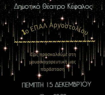 Μουσική & Χορός1ο ΕΠΑΛ Αργοστολίου: Μουσικοχορευτική εκδήλωση στο Δημοτικό Θέατρο Κέφαλος τη Πέμπτη 15 Δεκεμβρίου12 Δεκεμβρίου, 202212 Δεκεμβρίου, 2022Μουσική & Χορός317 viewsΤο σχολείο μας το 1ο Επάλ Αργοστολίου θα παρουσιάσει μουσικοχορευτική εκδήλωση στο δημοτικό θέατρο Κέφαλος τη Πέμπτη 15 Δεκεμβρίου 8:00...