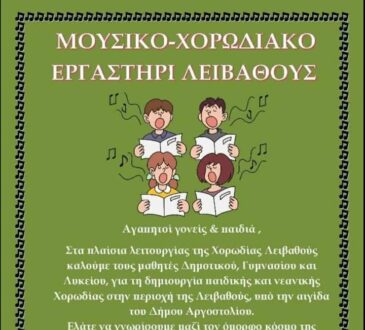 Μουσική & ΧορόςΠολιτισμόςΞεκινούν οι εγγραφές στο Μουσικο-Χορωδιακό Εργαστήρι Λειβαθούς11 Σεπτεμβρίου, 2025Μουσική & ΧορόςΠολιτισμός202 views