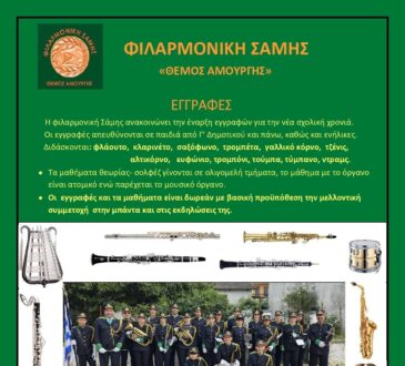 Μουσική & ΧορόςΠολιτισμόςΕγγραφές για συμμετοχή στη Φιλαρμονική του Δήμου Σάμης16 Σεπτεμβρίου, 2025Μουσική & ΧορόςΠολιτισμός195 viewsΕγγραφές για συμμετοχή στη Φιλαρμονική του Δήμου Σάμης Με αφορμή την έναρξη της νέας σχολικής χρονιάς, ο Δήμος Σάμης σας...