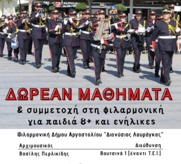 ΦΙΛΑΡΜΟΝΙΚΗ ΑΡΓΟΣΤΟΛΙΟΥ «ΔΙΟΝΥΣΙΟΣ ΛΑΥΡΑΓΚΑΣ» Στη Δημοτική Φιλαρμονική Αργοστολίου "Διονύσιος Λαυράγκας" παρέχεται συνολική μουσική εκπαίδευση, θεωρητικών και μουσικού οργάνου, σε μικρά...