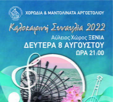 Μουσική & ΧορόςΤη Δευτέρα 8 Αυγούστου η Καλοκαιρινή Συναυλία της Χορωδίας και Μαντολινάτας Αργοστολίου στο Ξενία7 Αυγούστου, 20227 Αυγούστου, 2022Μουσική & Χορός856 viewsΑΝΑΚΟΙΝΩΣΗ – ΠΡΟΣΚΛΗΣΗ Δευτέρα 8 Αυγούστου 2022 , ώρα 9 μμ. τον αύλειο χώρο του ΞΕΝΙΑ , ΚΑΛΟΚΑΙΡΙΝΗ ΣΥΝΑΥΛΙΑ ΟΛΩΝ...