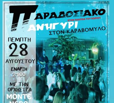 Μουσική & ΧορόςΣήμερα το βράδυ το παραδοσιακό πανηγύρι στον Καραβόμυλο από τον Α.Ο. Σάμης28 Αυγούστου, 202528 Αυγούστου, 2025Μουσική & Χορός194 views