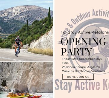 Ξεκινάει το 1ο Stay Active Kefalonia! Σας περιμένουμε όλους την Παρασκευή 22 Σεπτεμβρίου στο Opening Party στις 19:00 στην πλατεία Βαλλιάνου. Μουσική κάλυψη από...