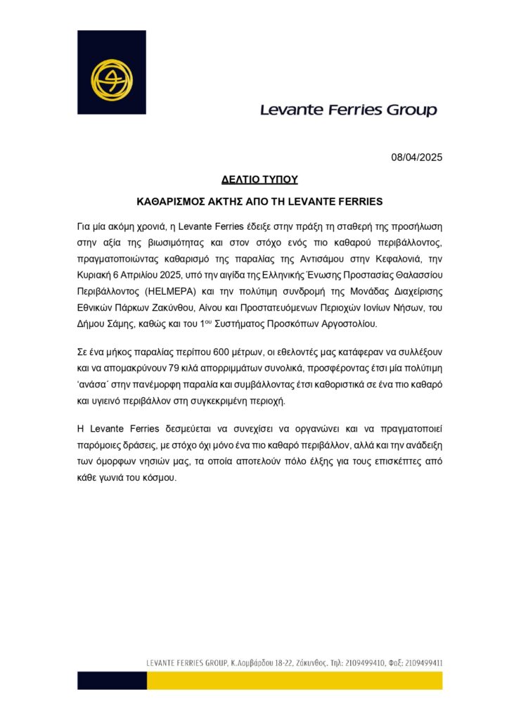 Levante Ferries: Καθαρισμός της παραλίας της Αντισάμου