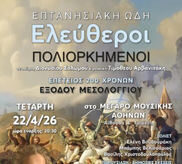 «Ελεύθεροι Πολιορκημένοι – Επτανησιακή Ωδή»: Μια κορυφαία καλλιτεχνική σύμπραξη με την Περιφέρεια Ιονίων Νήσων Με μια μεγαλειώδη μουσική παράσταση, τα...